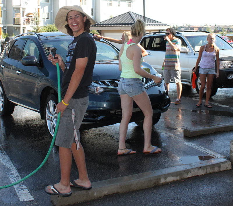 At the parking lot at town hall a steady stream of vehicles were coming in with many taking advantage to get the bug days of August cleaned off while helping out for a great cause. The girls joined by a few guy friends were making a fun day out of the project. Jacquie Drew, country singer from Calgary came along to rev up the atmosphere while local businesses and the Town donated everything from breakfast items, insurance coverage and washing supplies. Company and private donations of over 2000 dollars were added to the pot before the day’s event even started.